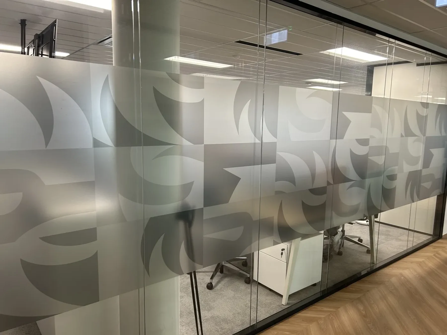 Films satinés, dépolis ou à motifs pour préserver l'intimité de vos bureaux et salles de réunion. Découpe au tracé exact de vos logos pour un résultat professionnel.